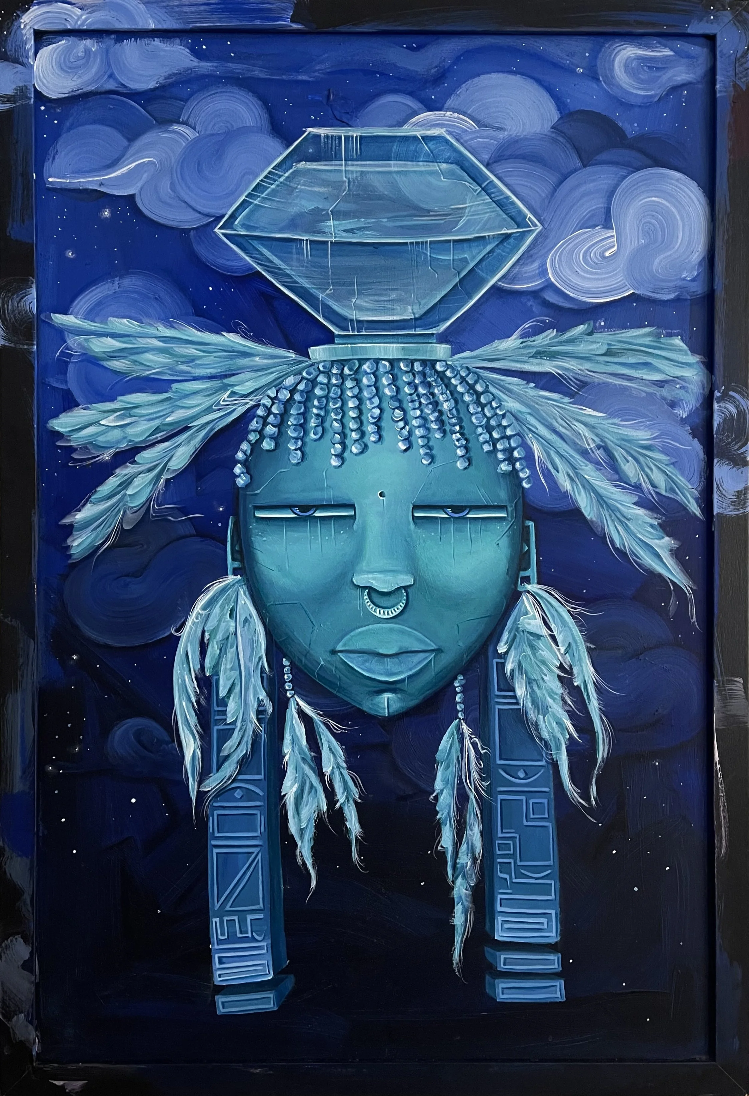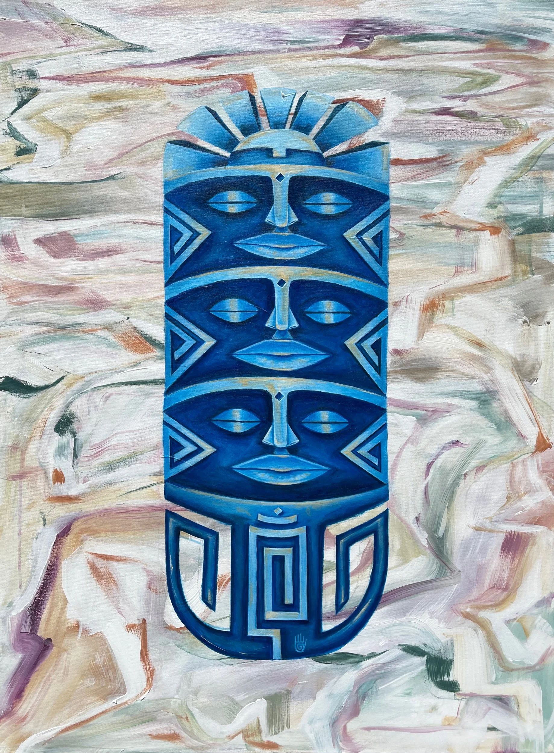 Preservation of nature and ancient indigenous culture through innovative imagery with acrylic on canvas
